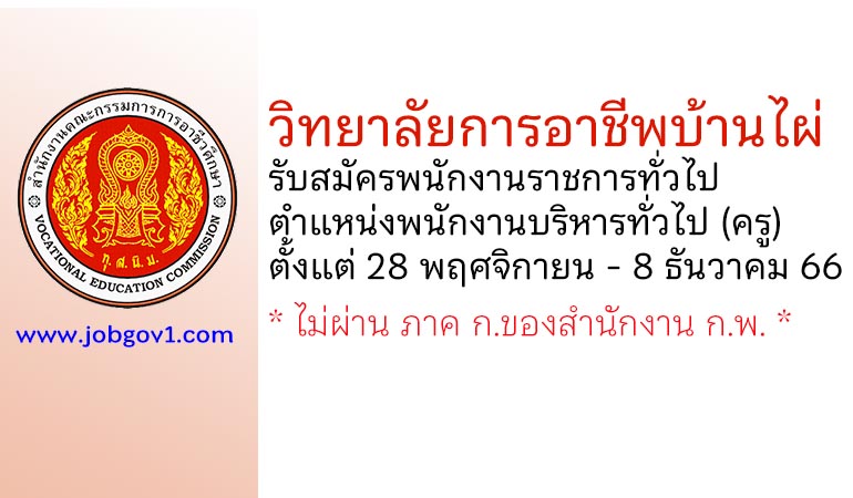 วิทยาลัยการอาชีพบ้านไผ่ รับสมัครพนักงานราชการทั่วไป ตำแหน่งพนักงานบริหารทั่วไป (ครู) ตั้งแต่ 28 พฤศจิกายน – 8 ธันวาคม 2566