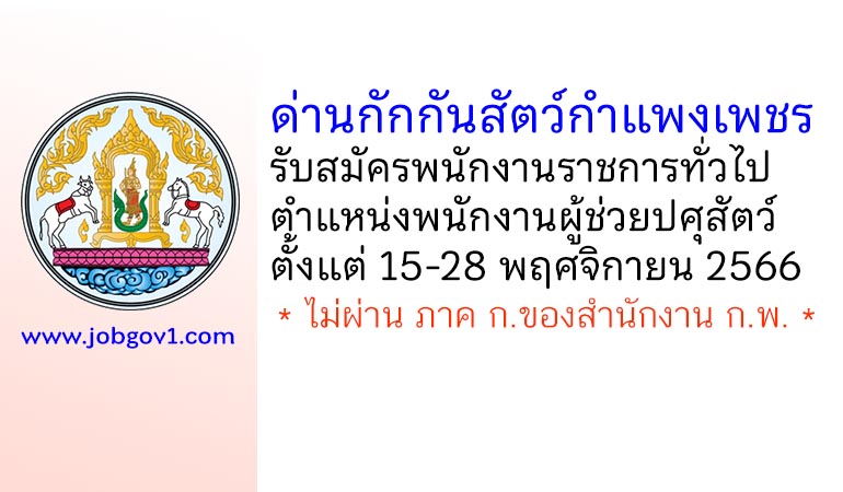ด่านกักกันสัตว์กำแพงเพชร รับสมัครพนักงานราชการทั่วไป ตำแหน่งพนักงานผู้ช่วยปศุสัตว์ ตั้งแต่วันที่ 15-28 พฤศจิกายน 2566