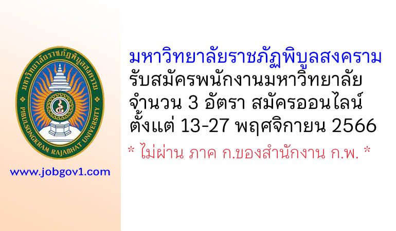 มหาวิทยาลัยราชภัฏพิบูลสงคราม รับสมัครพนักงานมหาวิทยาลัย 3 อัตรา ตั้งแต่วันที่ 13-27 พฤศจิกายน 2566