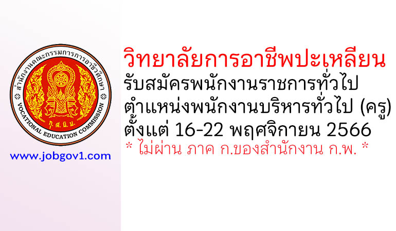 วิทยาลัยการอาชีพปะเหลียน รับสมัครพนักงานราชการทั่วไป ตำแหน่งพนักงานบริหารทั่วไป (ครู) ตั้งแต่วันที่ 16-22 พฤศจิกายน 2566