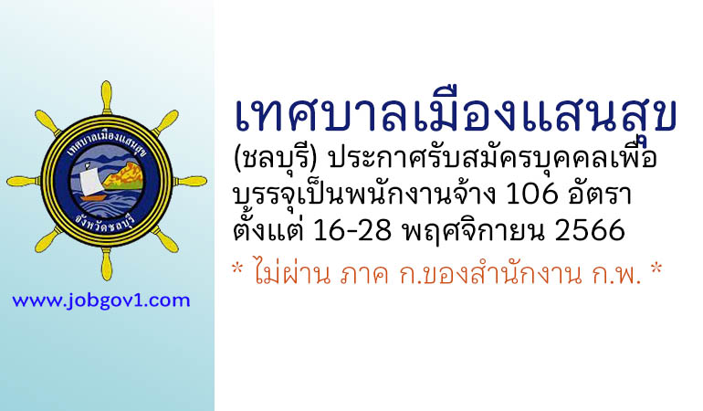 เทศบาลเมืองแสนสุข รับสมัครบุคคลเพื่อบรรจุเป็นพนักงานจ้าง 106 อัตรา ตั้งแต่วันที่ 16-28 พฤศจิกายน 2566