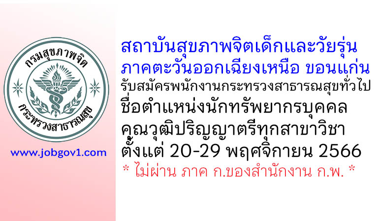 สถาบันสุขภาพจิตเด็กและวัยรุ่นภาคตะวันออกเฉียงเหนือ รับสมัครพนักงานกระทรวงสาธารณสุขทั่วไป ตำแหน่งนักทรัพยากรบุคคล ตั้งแต่วันที่ 20-29 พฤศจิกายน 2566