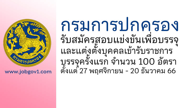 กรมการปกครอง รับสมัครสอบแข่งขันเพื่อบรรจุและแต่งตั้งบุคคลเข้ารับราชการ บรรจุครั้งแรก 100 อัตรา ตั้งแต่ 27 พฤศจิกายน – 20 ธันวาคม 2566