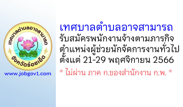 เทศบาลตำบลอาจสามารถ รับสมัครพนักงานจ้างตามภารกิจ ตำแหน่งผู้ช่วยนักจัดการงานทั่วไป ตั้งแต่วันที่ 21-29 พฤศจิกายน 2566