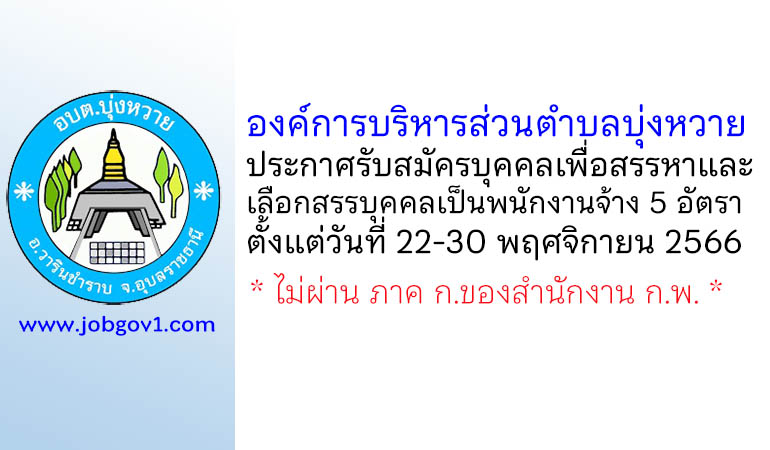 องค์การบริหารส่วนตำบลบุ่งหวาย รับสมัครบุคคลเพื่อสรรหาและเลือกสรรบุคคลเป็นพนักงานจ้าง 5 อัตรา ตั้งแต่วันที่ 22-30 พฤศจิกายน 2566