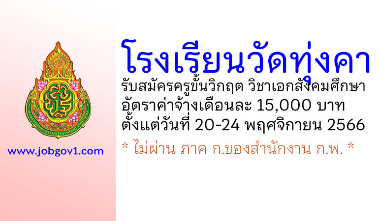 โรงเรียนวัดทุ่งคา รับสมัครครูขั้นวิกฤต วิชาเอกสังคมศึกษา ตั้งแต่วันที่ 20-24 พฤศจิกายน 2566