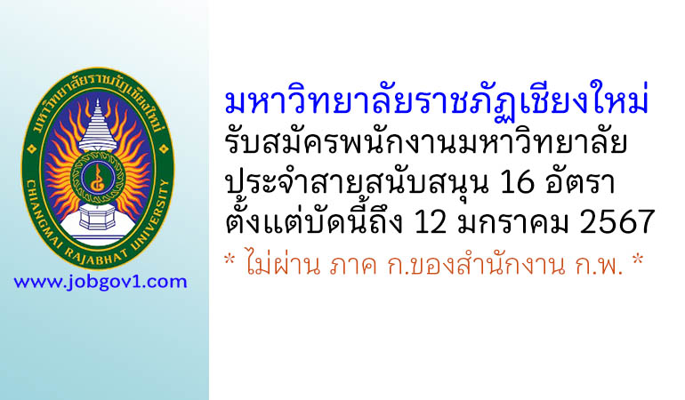 มหาวิทยาลัยราชภัฏเชียงใหม่ รับสมัครพนักงานมหาวิทยาลัยประจำสายสนับสนุน 16 อัตรา ตั้งแต่บัดนี้ถึง 12 มกราคม 2567