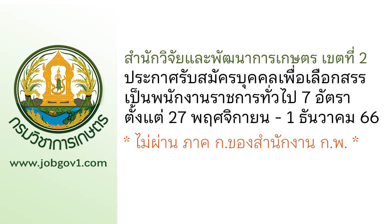 สำนักวิจัยและพัฒนาการเกษตร เขตที่ 2 รับสมัครบุคคลเพื่อเลือกสรรเป็นพนักงานราชการทั่วไป 7 อัตรา ตั้งแต่ 27 พฤศจิกายน – 1 ธันวาคม 2566