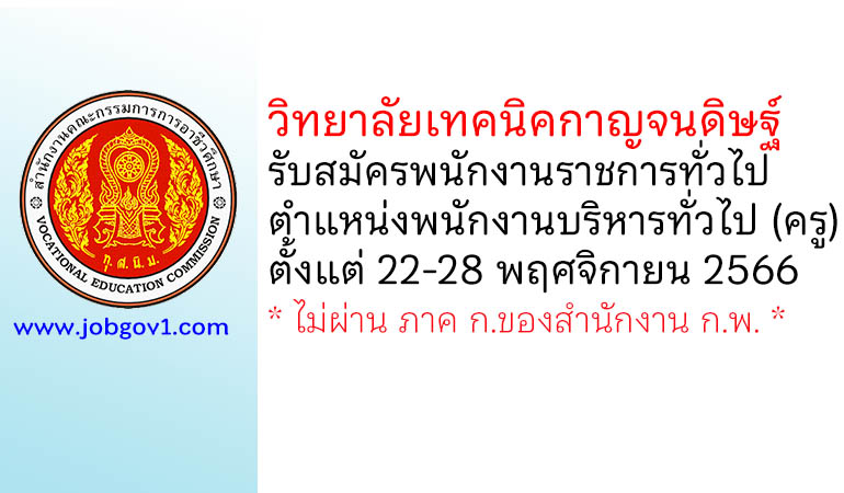 วิทยาลัยเทคนิคกาญจนดิษฐ์ รับสมัครพนักงานราชการ ตำแหน่งพนักงานบริหารทั่วไป (ครู) ตั้งแต่วันที่ 22-28 พฤศจิกายน 2566