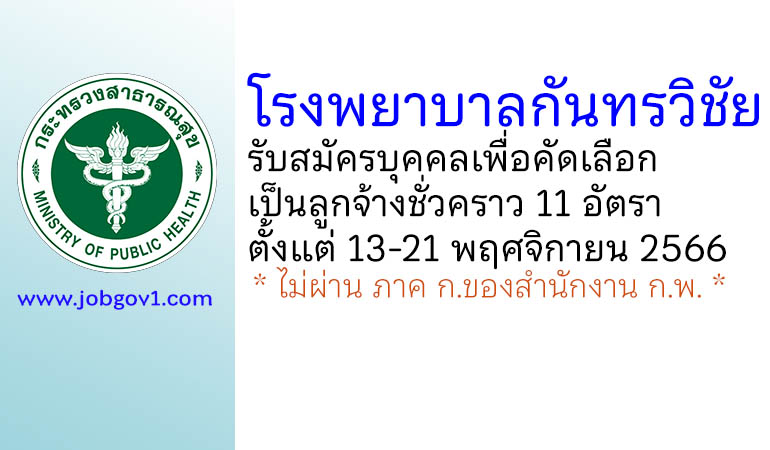 โรงพยาบาลกันทรวิชัย รับสมัครบุคคลเพื่อคัดเลือกเป็นลูกจ้างชั่วคราว 11 อัตรา ตั้งแต่วันที่ 13-21 พฤศจิกายน 2566