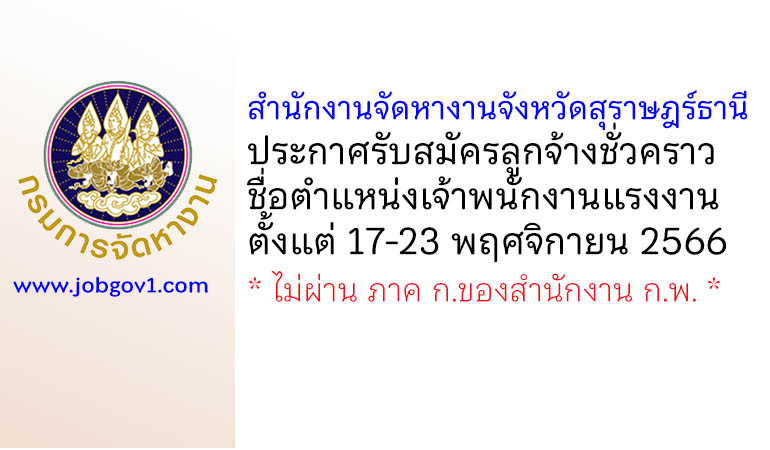 สำนักงานจัดหางานจังหวัดสุราษฎร์ธานี รับสมัครลูกจ้างชั่วคราว ตำแหน่งเจ้าพนักงานแรงงาน ตั้งแต่วันที่ 17-23 พฤศจิกายน 2566