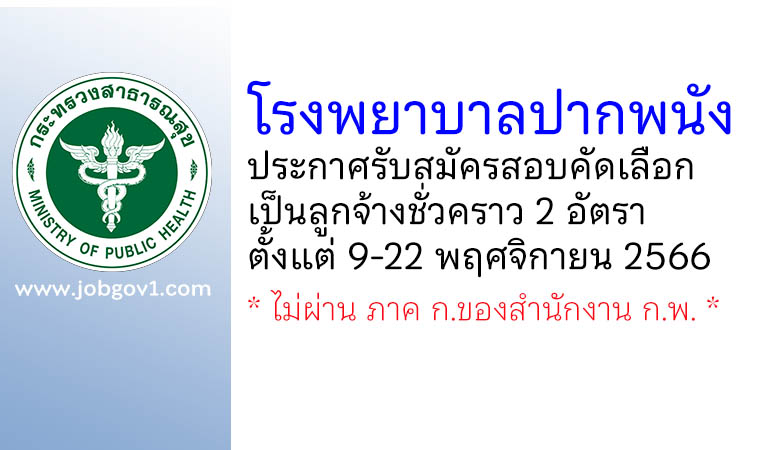 โรงพยาบาลปากพนัง รับสมัครสอบคัดเลือกเป็นลูกจ้างชั่วคราว 2 อัตรา ตั้งแต่วันที่ 9-22 พฤศจิกายน 2566