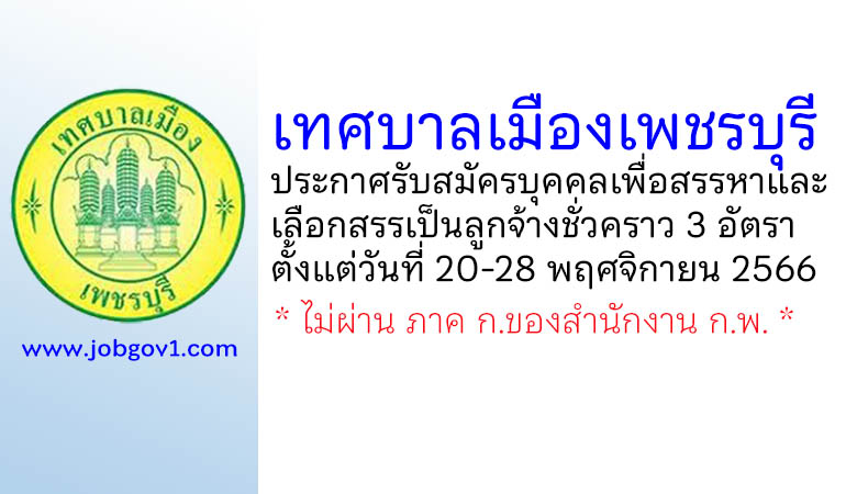 เทศบาลเมืองเพชรบุรี รับสมัครบุคคลเพื่อสรรหาและเลือกสรรเป็นลูกจ้างชั่วคราว 3 อัตรา ตั้งแต่วันที่ 20-28 พฤศจิกายน 2566