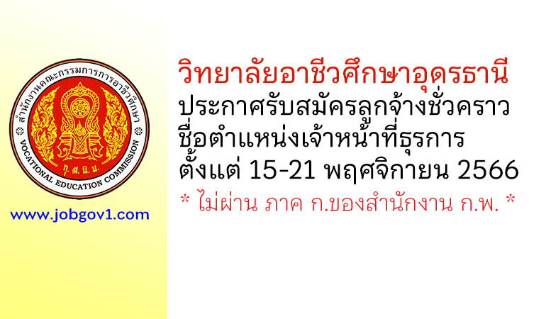วิทยาลัยอาชีวศึกษาอุดรธานี รับสมัครลูกจ้างชั่วคราว ตำแหน่งเจ้าหน้าที่ธุรการ ตั้งแต่วันที่ 15-21 พฤศจิกายน 2566
