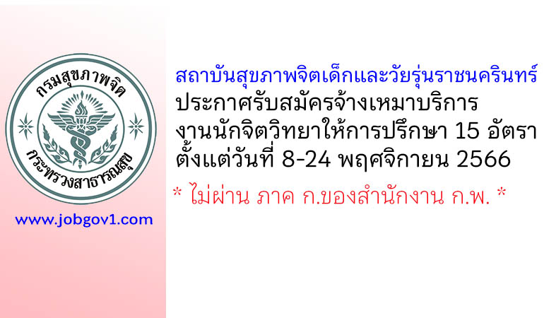 สถาบันสุขภาพจิตเด็กและวัยรุ่นราชนครินทร์ รับสมัครจ้างเหมาบริการ งานนักจิตวิทยาให้การปรึกษา 15 อัตรา ตั้งแต่วันที่ 8-24 พฤศจิกายน 2566