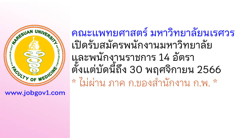 คณะแพทยศาสตร์ มหาวิทยาลัยนเรศวร รับสมัครพนักงานมหาวิทยาลัย และพนักงานราชการ 14 อัตรา ตั้งแต่บัดนี้ถึง 30 พฤศจิกายน 2566