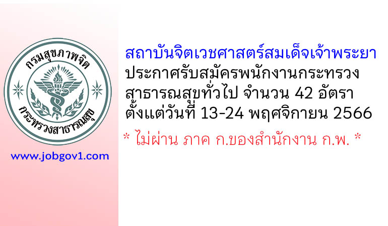 สถาบันจิตเวชศาสตร์สมเด็จเจ้าพระยา รับสมัครพนักงานกระทรวงสาธารณสุขทั่วไป 42 อัตรา ตั้งแต่วันที่ 13-24 พฤศจิกายน 2566