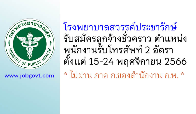 โรงพยาบาลสวรรค์ประชารักษ์ รับสมัครลูกจ้างชั่วคราว ตำแหน่งพนักงานรับโทรศัพท์ 2 อัตรา ตั้งแต่วันที่ 15-24 พฤศจิกายน 2566