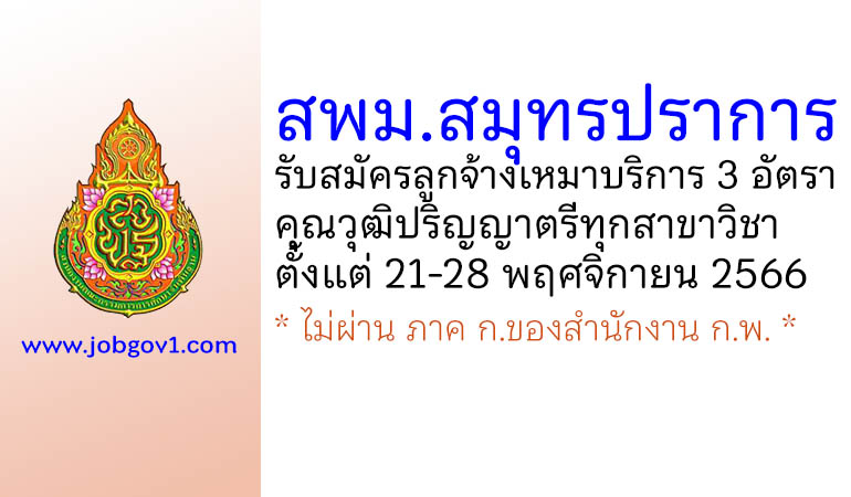 สพม.สมุทรปราการ รับสมัครลูกจ้างเหมาบริการ 3 อัตรา ตั้งแต่วันที่ 21-28 พฤศจิกายน 2566