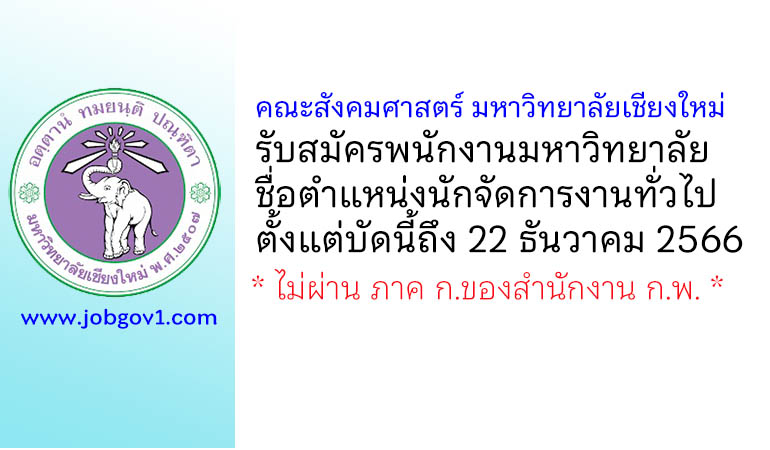 คณะสังคมศาสตร์ มหาวิทยาลัยเชียงใหม่ รับสมัครพนักงานมหาวิทยาลัย ตำแหน่งนักจัดการงานทั่วไป ตั้งแต่บัดนี้ถึง 22 ธันวาคม 2566
