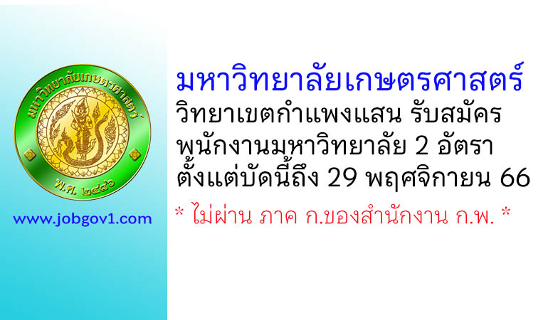 มหาวิทยาลัยเกษตรศาสตร์ วิทยาเขตกำแพงแสน รับสมัครพนักงานมหาวิทยาลัย 2 อัตรา ตั้งแต่บัดนี้ถึง 29 พฤศจิกายน 2566