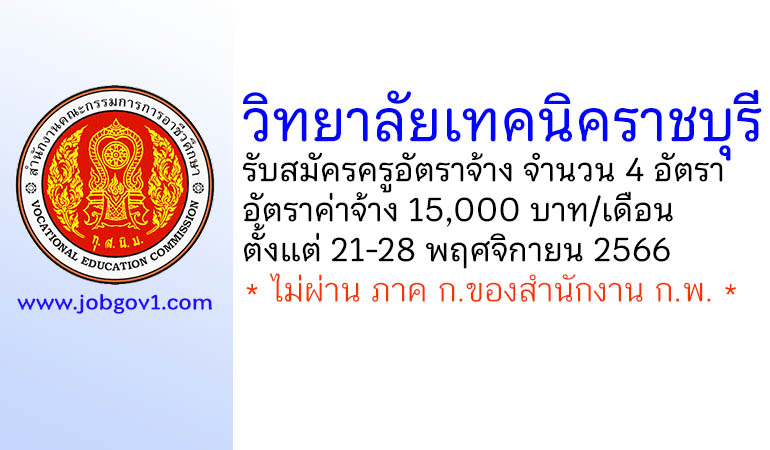 วิทยาลัยเทคนิคราชบุรี รับสมัครครูอัตราจ้าง จำนวน 4 อัตรา ตั้งแต่วันที่ 21-28 พฤศจิกายน 2566