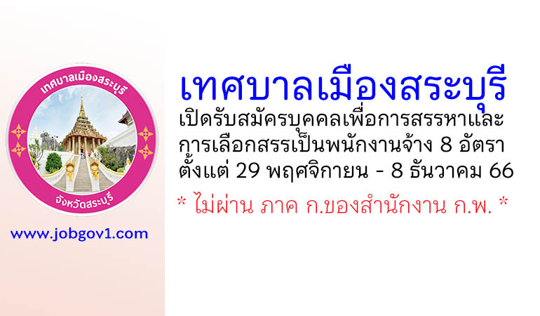 เทศบาลเมืองสระบุรี รับสมัครบุคคลเพื่อการสรรหาและการเลือกสรรเป็นพนักงานจ้าง 8 อัตรา ตั้งแต่ 29 พฤศจิกายน – 8 ธันวาคม 2566