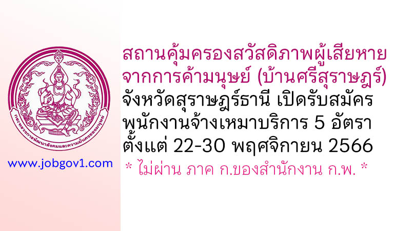สถานคุ้มครองสวัสดิภาพผู้เสียหายจากการค้ามนุษย์ (บ้านศรีสุราษฎร์) จังหวัดสุราษฎร์ธานี รับสมัครพนักงานจ้างเหมาบริการ 5 อัตรา ตั้งแต่วันที่ 22-30 พฤศจิกายน 2566