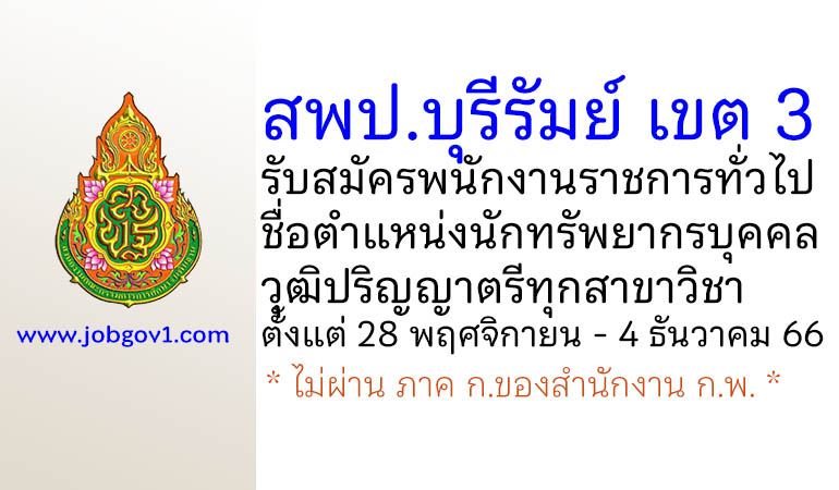 สพป.บุรีรัมย์ เขต 3 รับสมัครพนักงานราชการทั่วไป ตำแหน่งนักทรัพยากรบุคคล ตั้งแต่ 28 พฤศจิกายน – 4 ธันวาคม 2566