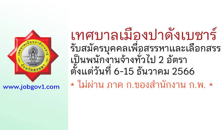 เทศบาลเมืองปาดังเบซาร์ รับสมัครบุคคลเพื่อสรรหาและเลือกสรรเป็นพนักงานจ้างทั่วไป 2 อัตรา ตั้งแต่วันที่ 6-15 ธันวาคม 2566