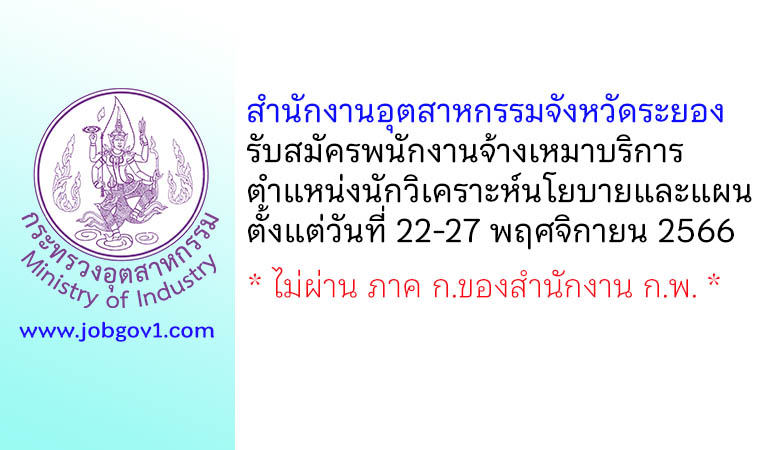 สำนักงานอุตสาหกรรมจังหวัดระยอง รับสมัครพนักงานจ้างเหมาบริการ ตำแหน่งนักวิเคราะห์นโยบายและแผน ตั้งแต่วันที่ 22-27 พฤศจิกายน 2566