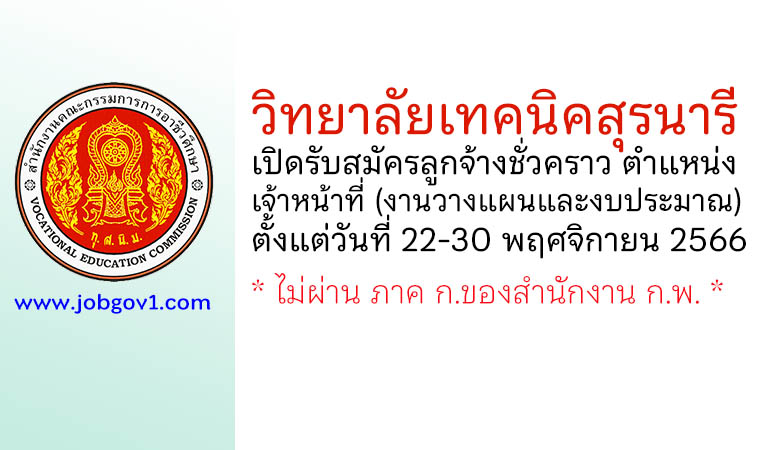 วิทยาลัยเทคนิคสุรนารี รับสมัครลูกจ้างชั่วคราว ตำแหน่งเจ้าหน้าที่ (งานวางแผนและงบประมาณ) ตั้งแต่วันที่ 22-30 พฤศจิกายน 2566