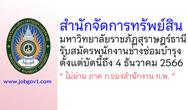 สำนักจัดการทรัพย์สิน มหาวิทยาลัยราชภัฏสุราษฎร์ธานี รับสมัครพนักงานช่างซ่อมบำรุง ตั้งแต่บัดนี้ถึง 4 ธันวาคม 2566