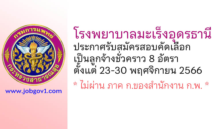 โรงพยาบาลมะเร็งอุดรธานี รับสมัครสอบคัดเลือกเป็นลูกจ้างชั่วคราว 8 อัตรา ตั้งแต่วันที่ 23-30 พฤศจิกายน 2566