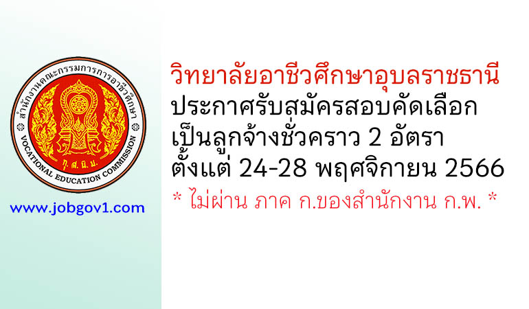 วิทยาลัยอาชีวศึกษาอุบลราชธานี รับสมัครสอบคัดเลือกเป็นลูกจ้างชั่วคราว 2 อัตรา ตั้งแต่วันที่ 24-28 พฤศจิกายน 2566