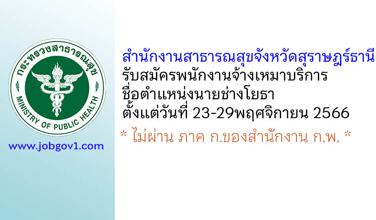 สำนักงานสาธารณสุขจังหวัดสุราษฎร์ธานี รับสมัครพนักงานจ้างเหมาบริการ ตำแหน่งนายช่างโยธา ตั้งแต่วันที่ 23-29 พฤศจิกายน 2566