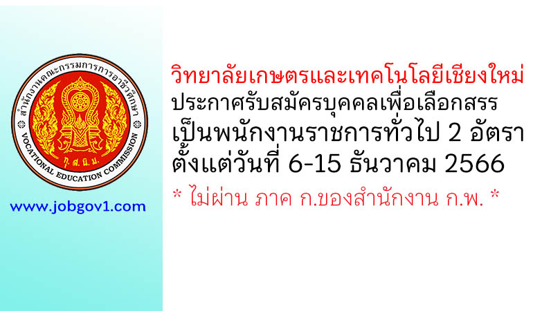 วิทยาลัยเกษตรและเทคโนโลยีเชียงใหม่ รับสมัครบุคคลเพื่อเลือกสรรเป็นพนักงานราชการทั่วไป 2 อัตรา ตั้งแต่วันที่ 6-15 ธันวาคม 2566