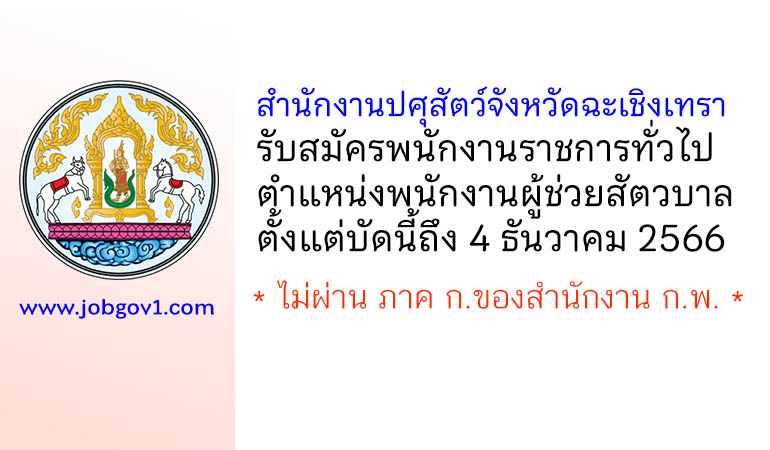 สำนักงานปศุสัตว์จังหวัดฉะเชิงเทรา รับสมัครพนักงานราชการทั่วไป ตำแหน่งพนักงานผู้ช่วยสัตวบาล ตั้งแต่บัดนี้ถึง 4 ธันวาคม 2566