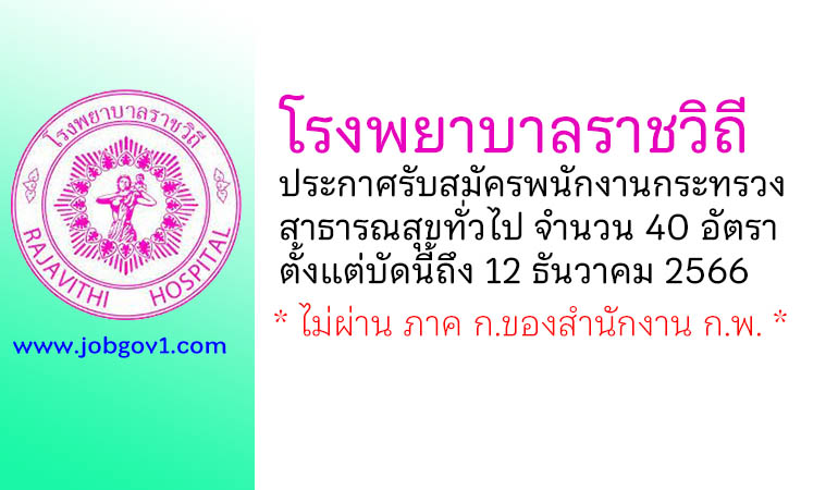 โรงพยาบาลราชวิถี รับสมัครพนักงานกระทรวงสาธารณสุขทั่วไป 40 อัตรา ตั้งแต่บัดนี้ถึง 12 ธันวาคม 2566