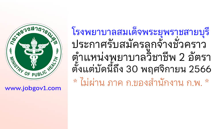 โรงพยาบาลสมเด็จพระยุพราชสายบุรี รับสมัครลูกจ้างชั่วคราว ตำแหน่งพยาบาลวิชาชีพ 2 อัตรา ตั้งแต่บัดนี้ถึง 30 พฤศจิกายน 2566