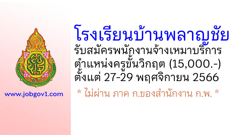 โรงเรียนบ้านพลาญชัย รับสมัครพนักงานจ้างเหมาบริการ ตำแหน่งครูขั้นวิกฤต ตั้งแต่วันที่ 27-29 พฤศจิกายน 2566