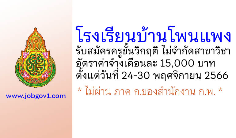 โรงเรียนบ้านโพนแพง รับสมัครครูขั้นวิกฤติ ไม่จำกัดสาขาวิชา ตั้งแต่วันที่ 24-30 พฤศจิกายน 2566