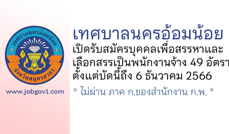 เทศบาลนครอ้อมน้อย รับสมัครบุคคลเพื่อสรรหาและเลือกสรรเป็นพนักงานจ้าง 49 อัตรา ตั้งแต่บัดนี้ถึง 6 ธันวาคม 2566