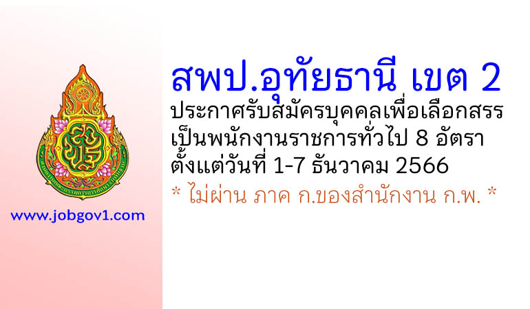 สพป.อุทัยธานี เขต 2 รับสมัครบุคคลเพื่อสรรหาและเลือกสรรเป็นพนักงานราชการทั่วไป 8 อัตรา ตั้งแต่วันที่ 1-7 ธันวาคม 2566