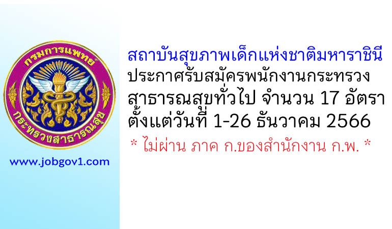 สถาบันสุขภาพเด็กแห่งชาติมหาราชินี รับสมัครพนักงานกระทรวงสาธารณสุขทั่วไป 17 อัตรา ตั้งแต่วันที่ 1-26 ธันวาคม 2566