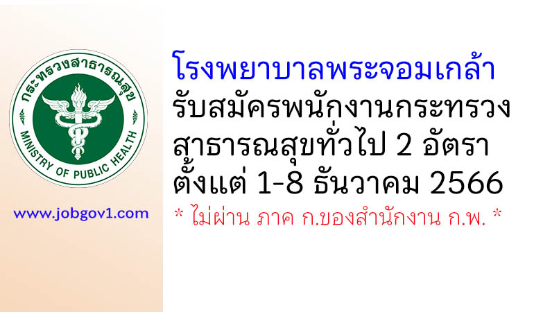 โรงพยาบาลพระจอมเกล้า รับสมัครพนักงานกระทรวงสาธารณสุขทั่วไป 2 อัตรา ตั้งแต่วันที่ 1-8 ธันวาคม 2566