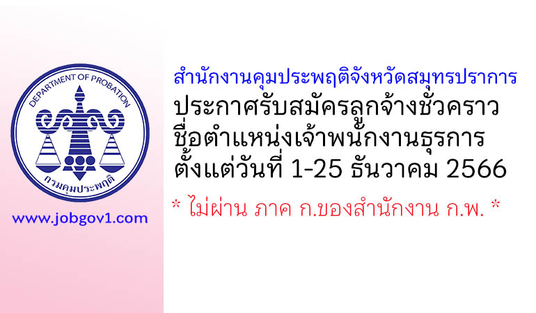 สำนักงานคุมประพฤติจังหวัดสมุทรปราการ รับสมัครลูกจ้างชั่วคราว ตำแหน่งเจ้าพนักงานธุรการ ตั้งแต่วันที่ 1-25 ธันวาคม 2566