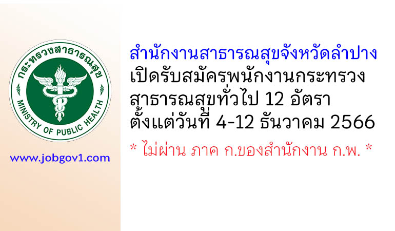 สำนักงานสาธารณสุขจังหวัดลำปาง รับสมัครพนักงานกระทรวงสาธารณสุขทั่วไป 12 อัตรา ตั้งแต่วันที่ 4-12 ธันวาคม 2566