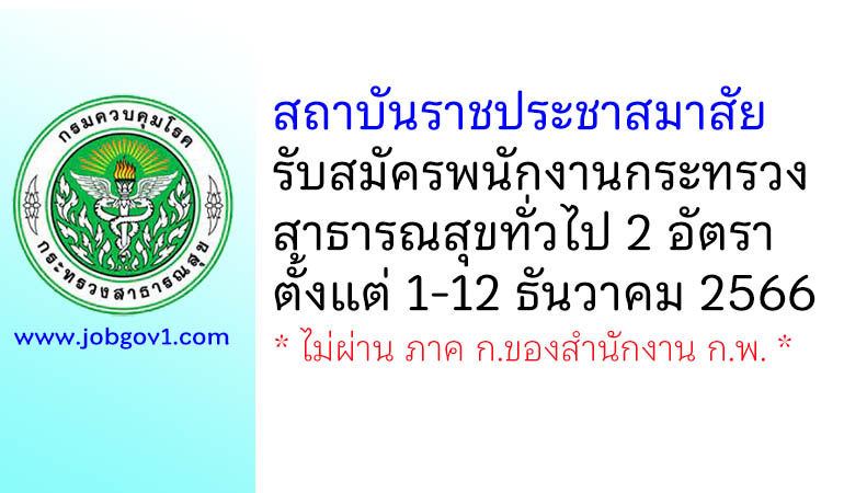 สถาบันราชประชาสมาสัย รับสมัครพนักงานกระทรวงสาธารณสุขทั่วไป 2 อัตรา ตั้งแต่วันที่ 1-12 ธันวาคม 2566