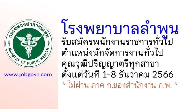 โรงพยาบาลลำพูน รับสมัครพนักงานราชการทั่วไป ตำแหน่งนักจัดการงานทั่วไป ตั้งแต่วันที่ 1-8 ธันวาคม 2566